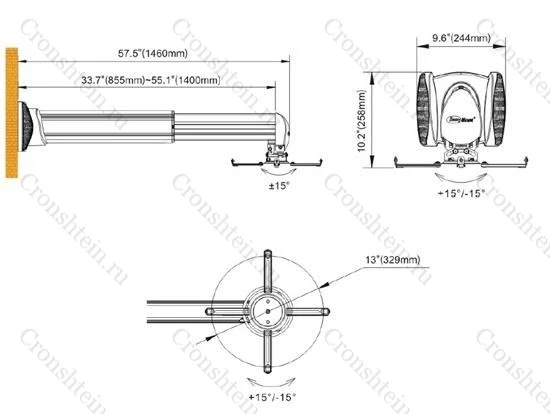 Это телескопическое короткофокусное настенное крепление совмещается с большинством существующих короткофокусных проекторов и интерактивными досками.
