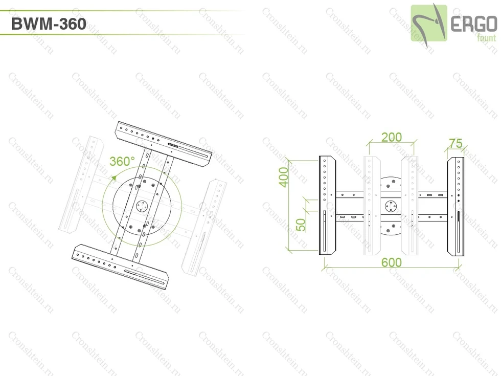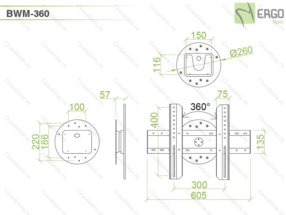 Технические характеристики кронштейн ERGO BWM 360. арт.8193: