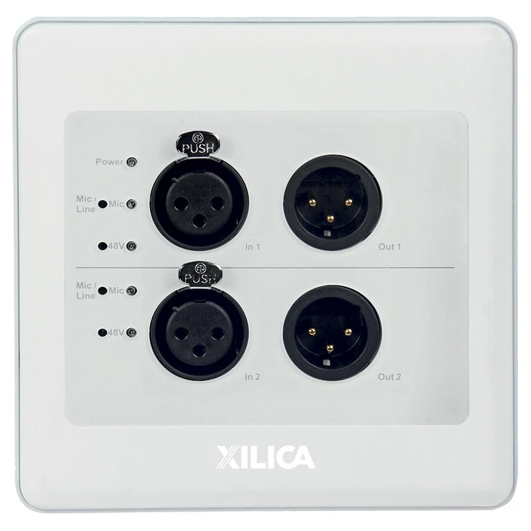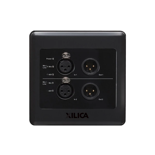Настенный транскодер аналоговых аудиосигналов и сигналов интерфейса Dante, входы 2 х XLR (розетка), выходы 2 х XLR (вилка), питание по PoE 48 В или внешнее. Цвет белый.