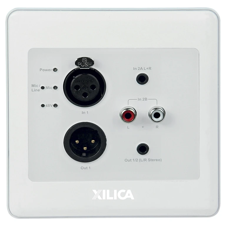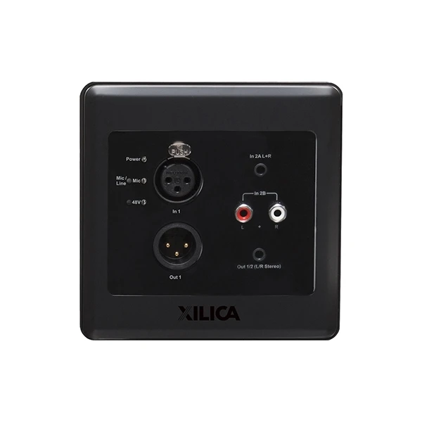 Настенный транскодер аналоговых аудиосигналов и сигналов интерфейса Dante, входы XLR (розетка) + miniJack 3,5 мм + 2 х RCA, выходы XLR (вилка) + miniJack 3,5 мм, питание по PoE 48 В или внешнее.