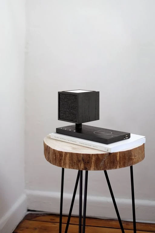 Беспроводная настольная колонка с встроенным LED-светильником и беспроводной зарядкой. Bluetooth 5.0, AUX, USB для зарядки; Размеры 25,7х15,6х12,7 см, Вес 1,45 кг.
