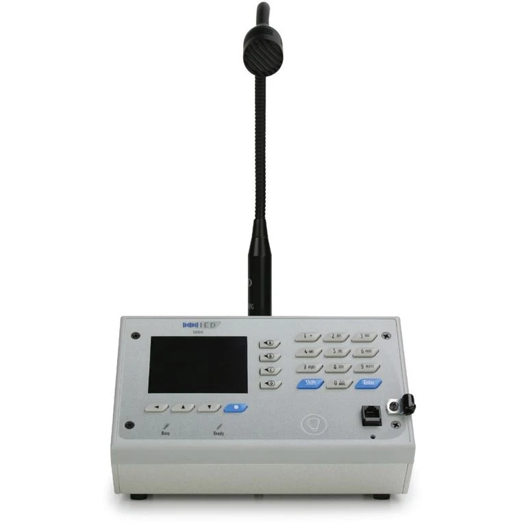 Настольная микрофонная 20-кнопочная станция с цветным дисплеем 3,6'' для системы GLOBALCOM с блоком расширения, технология CobraNet, питание по PoE. В комплекте микрофон 500G и блок расширения IEDA528E. Цвет серый, габаритные размеры: 130х216х130 мм, длина микрофона: 432 мм.