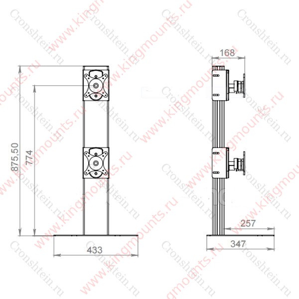 • Макс.нагрузка: 30 кг (15 кг на монитор)