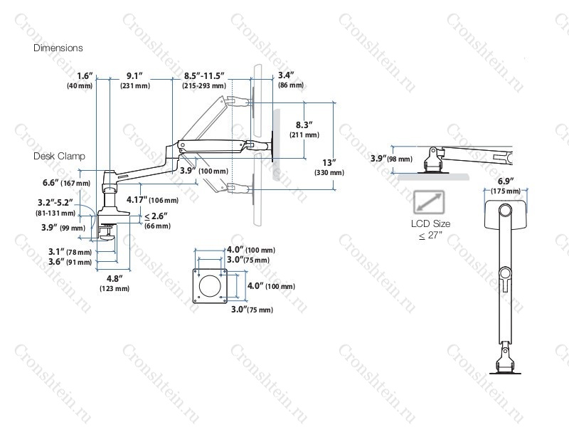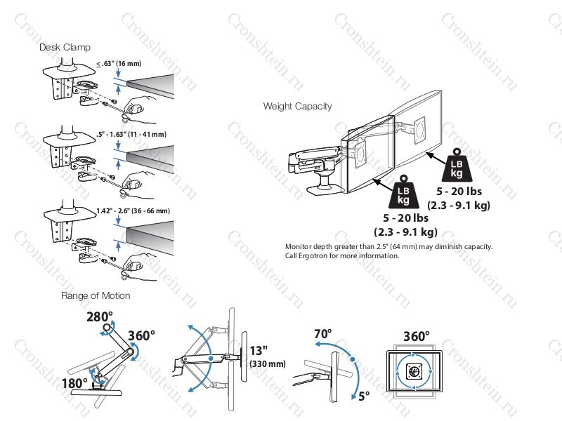 Запатентованная технология Constant Force (CF) позволяет изменять положение монитора минимальным усилием руки. Звенья крепления Ergotron LX Dual Side-by-Side Arm (45-491-216) складываются и придвигаются практически вплотную к стене. Защелкивающаяся крышка-фиксатор кронштейна Ergotron LX Dual Side-by-Side Arm (45-491-216) предохраняет от случайного снятия. Зажим-струбцина гарантируют ещё большую надёжность и стабильность при монтаже на поверхность. Специальные клипсы помогают поддерживать провода в кабельном канале, а значит на вашем рабочем месте будет порядок.