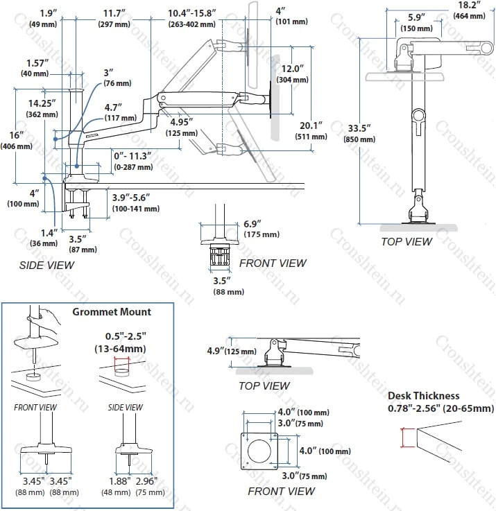 - через зажим-винт, который покупается отдельно (Ergotron 98-034), крепится через отверстие в столе, диаметром от 13 до 64 мм и толщиной до 65 мм.