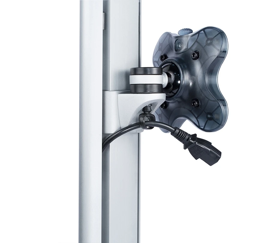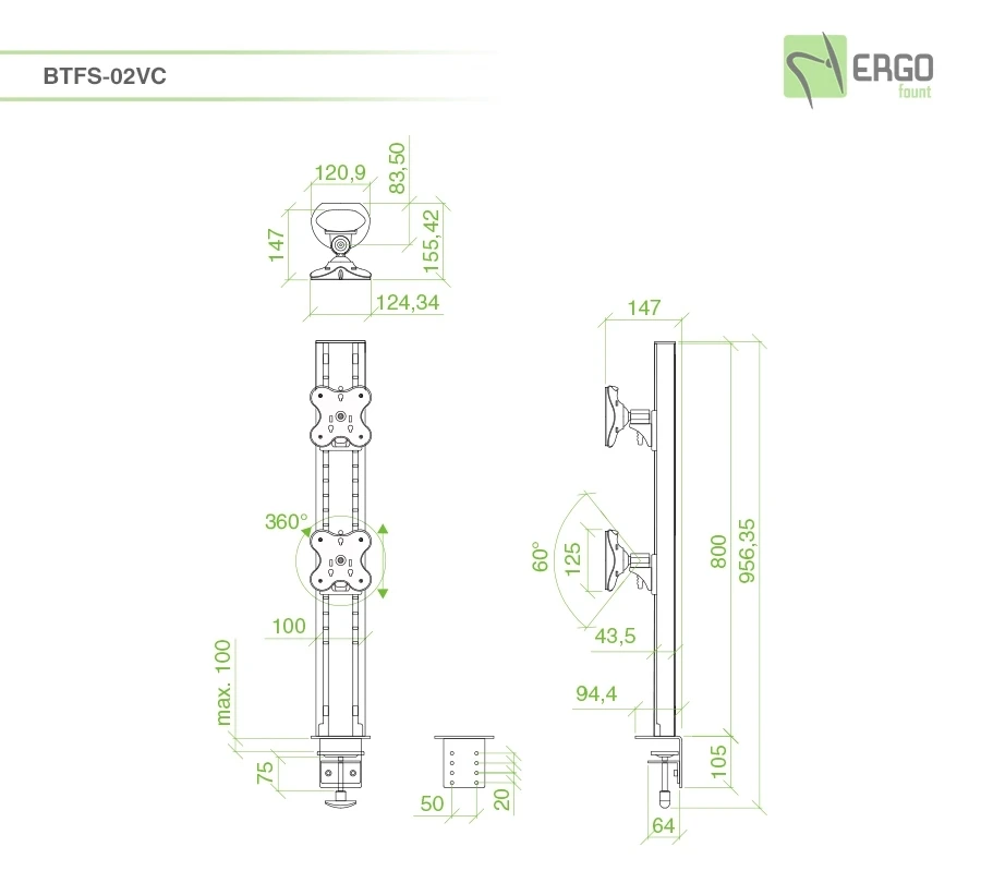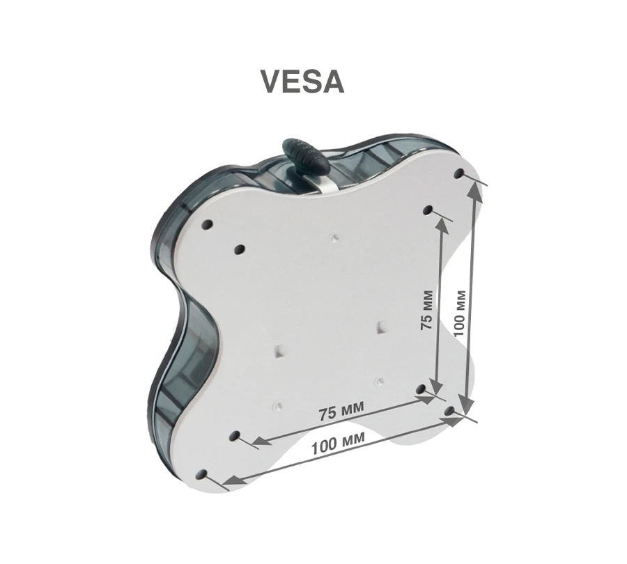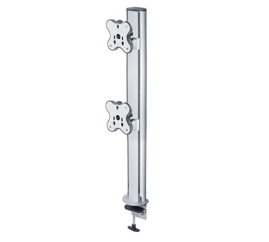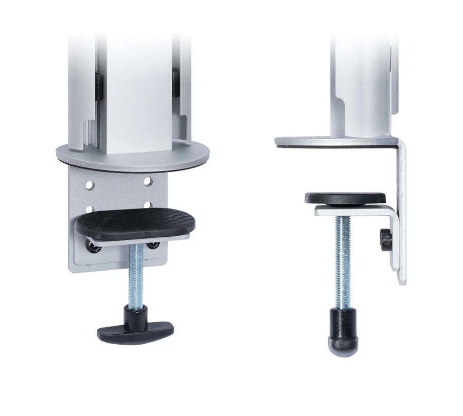 Настольное шарнирное крепление для 2 мониторов до 30’’. Регулировка высоты: 800 мм. Стандарт VESA 75х75, 100х100 мм. Вращение стойки: 360°. Наклон монитора: ±30°. Скрытый кабель-канал. Монтаж к столу: зажим типа C. Материал: алюминий, пластиковая декоративная отделка. Макс. нагрузка: 24 кг (по 12 кг на VESA).