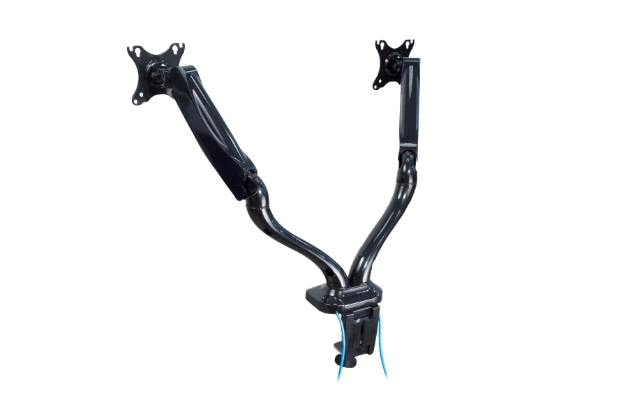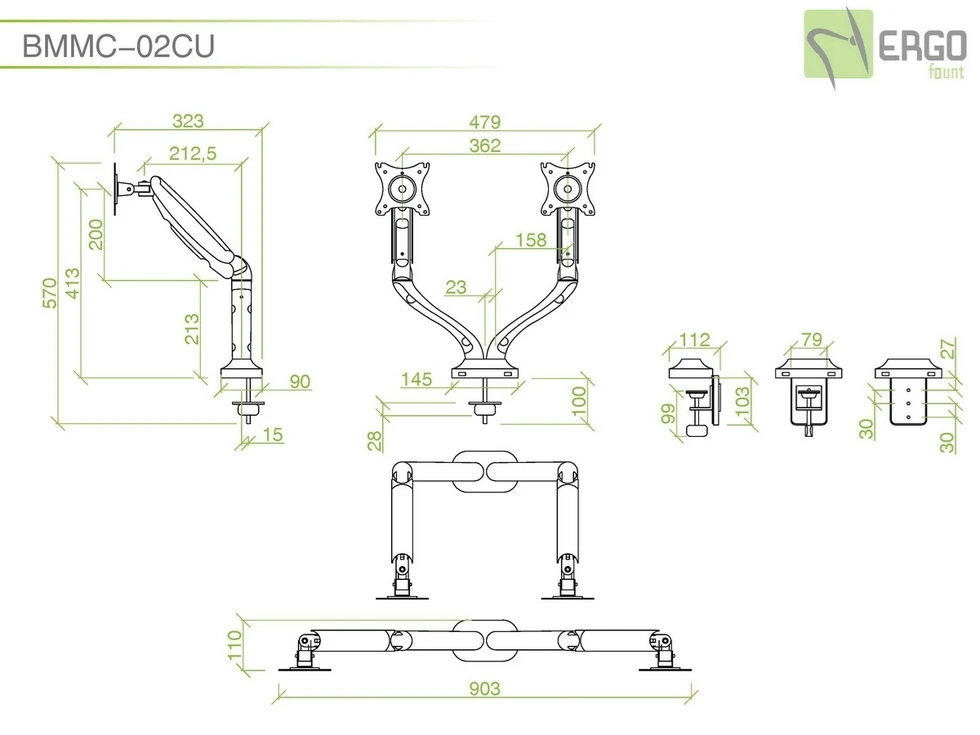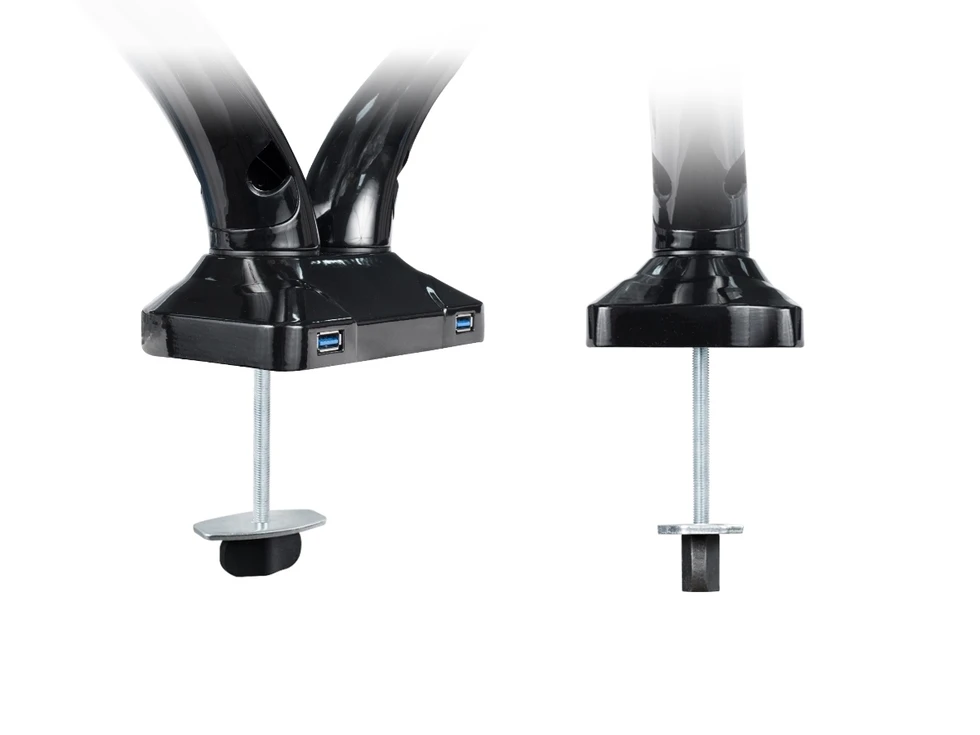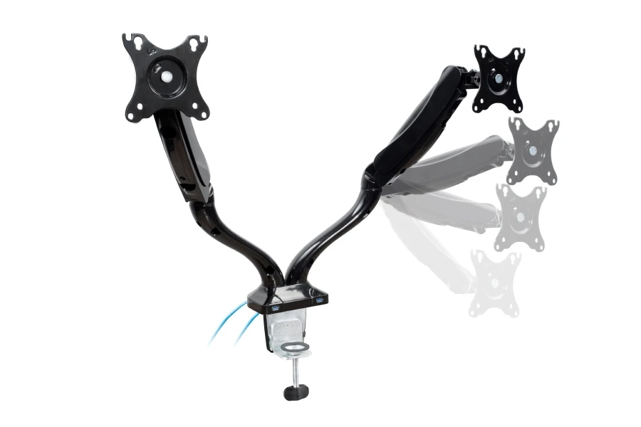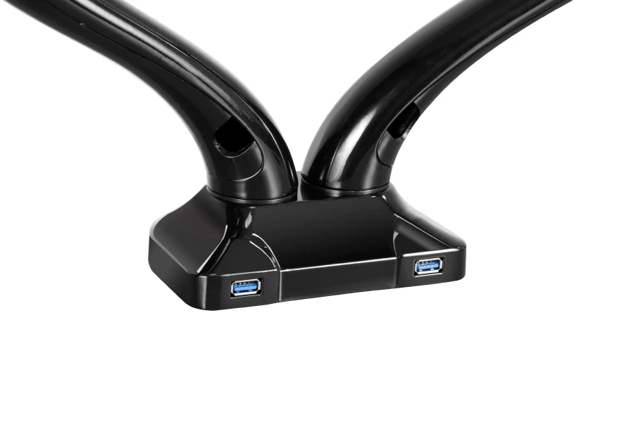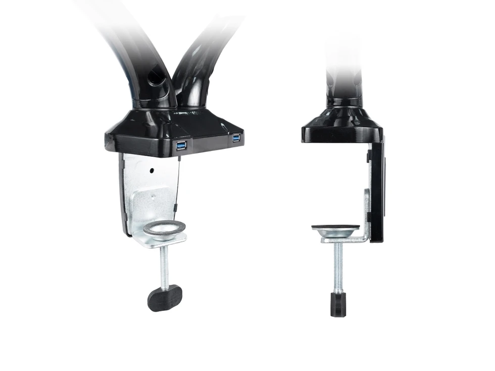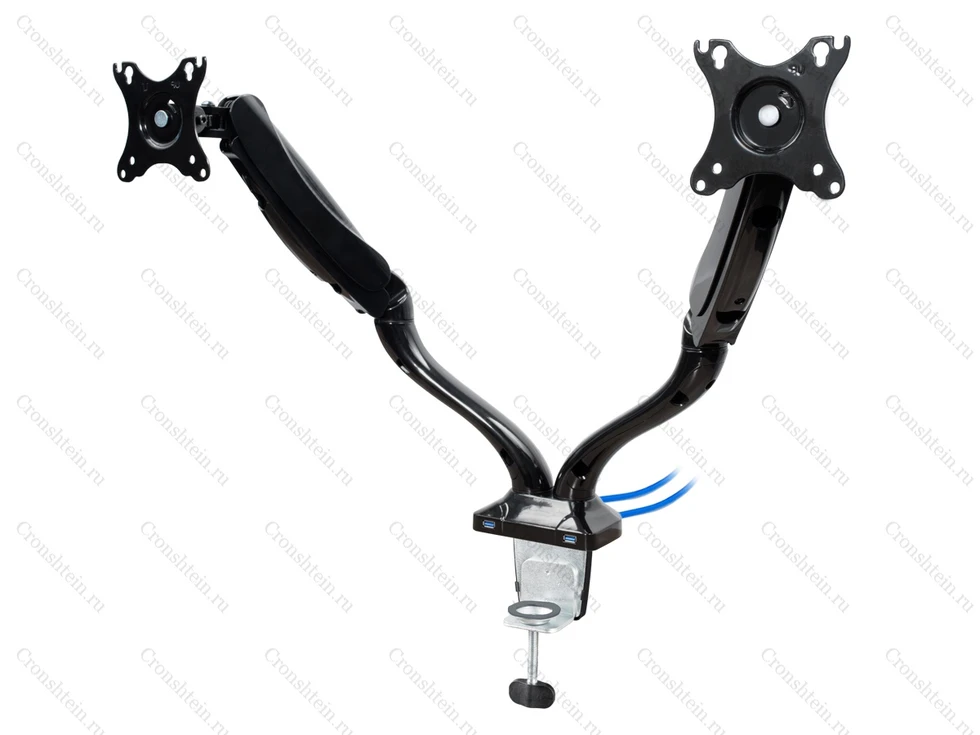 Настольный кронштейн для 2-х мониторов ERGO BMMC-02CU. арт 7351 это универсальный настольный крепеж для большинства дисплеев от 13 до 27 дюймов и весом до 6 кг. Вращение на 360°, 2 шарнирных соединения с прямым наклоном на ±90°. Газовая пружина отлично уравновешивает вес монитора. Кабель-канал. Крепление к столу: зажим или втулка. Подходит как для дома, так и для офиса