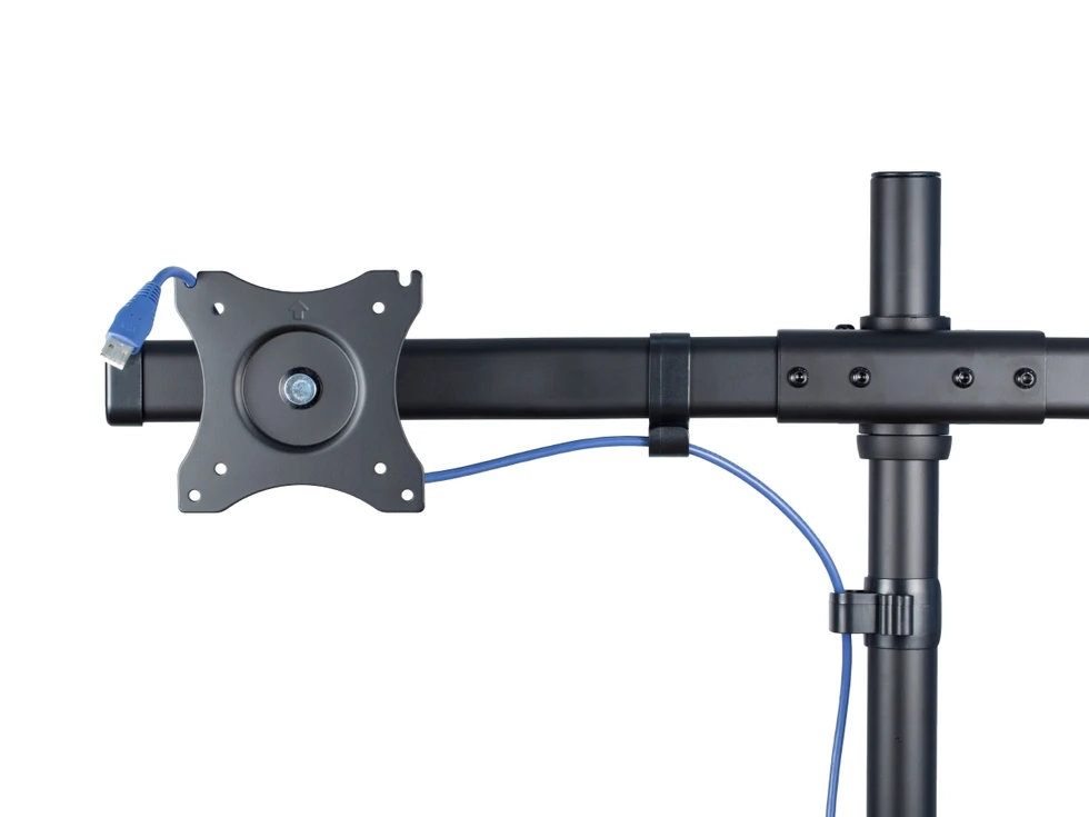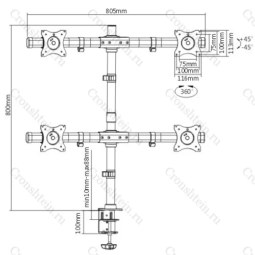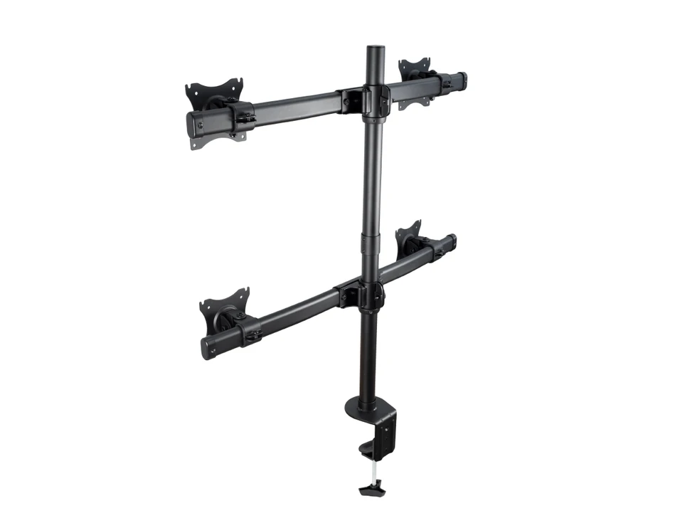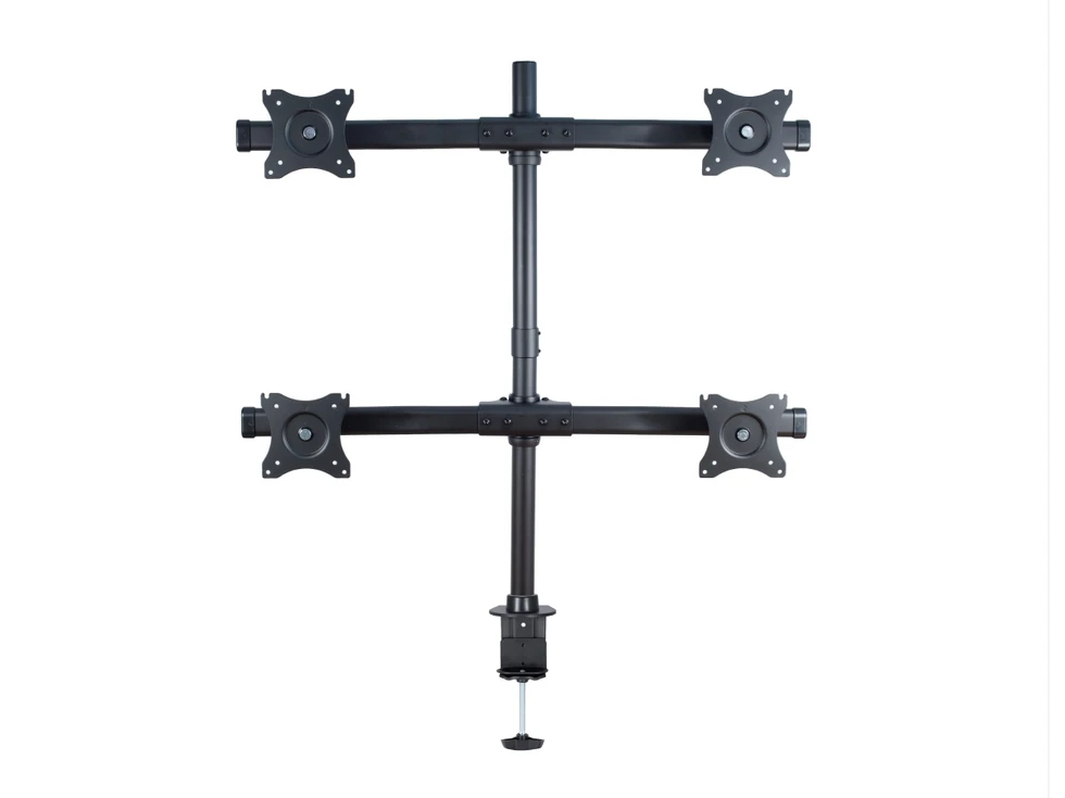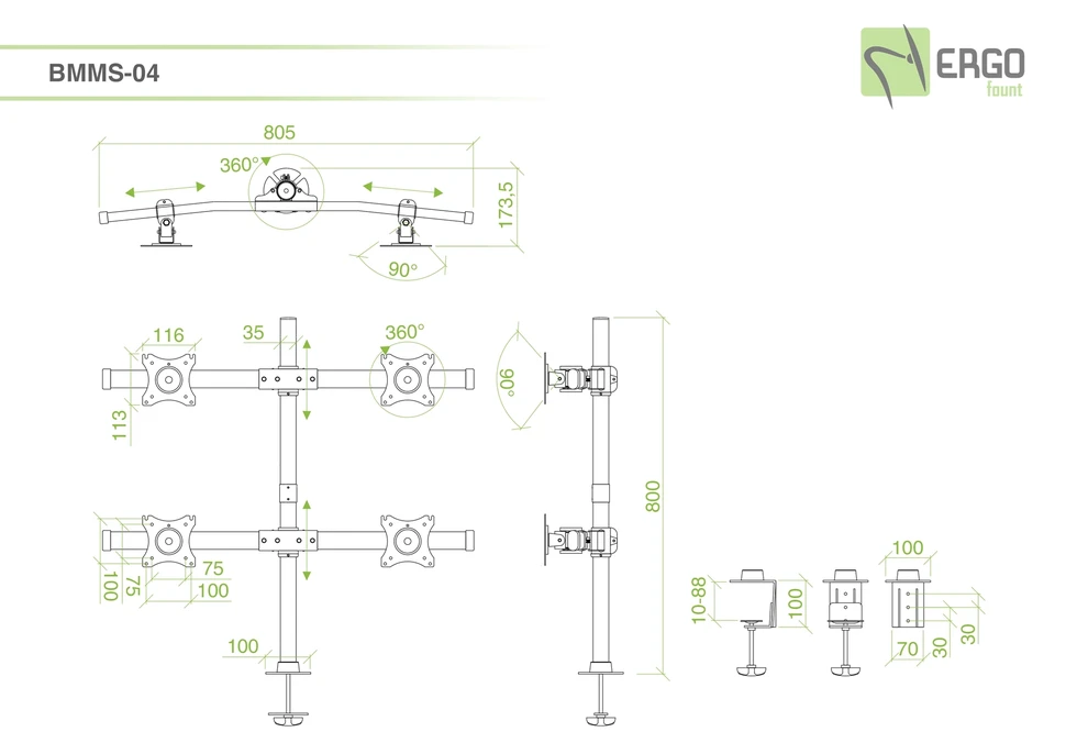 Настольный кронштейн ERGO BMMS-04. арт 7346 это универсальный настольный крепеж для большинства дисплеев от 13 до 27 дюймов и весом до 8 кг в положении два над двумя . Вращение на 360°, альбомная или портретная ориентация. Наклон на ±45° и поворот на ±15°. Кабель-канал. Крепление к столу: зажим или втулка.