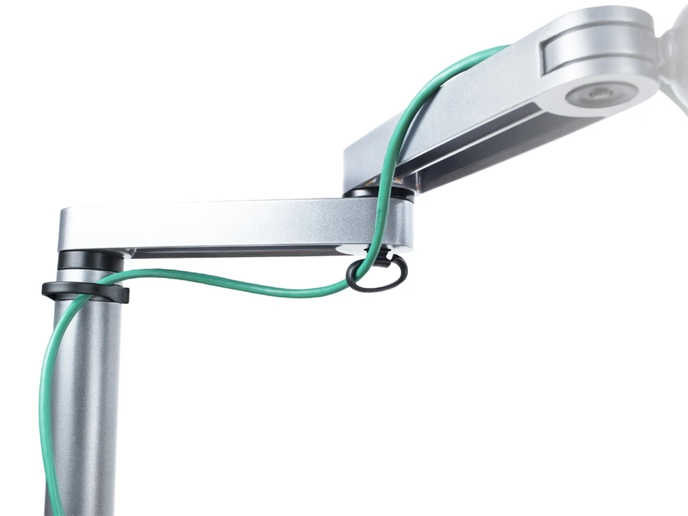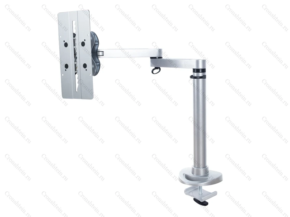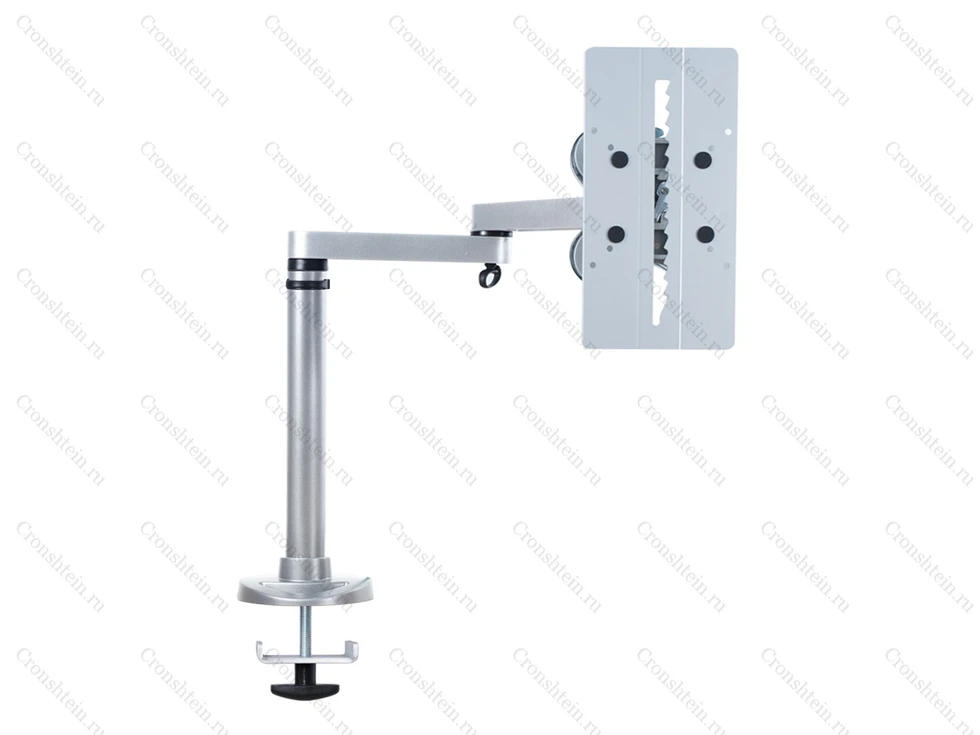 Кронштейн с навесным адаптером стандарта VESA 75х75, 100х100 мм, вращением 360° (для книжной и альбомной ориентации), наклоном ±35°, поворотом ±90°. Конструкцией предусмотрены клипсы, организующие кабель-канал (2 шт.). Для монитора предусмотрена антивандальная защита (от демонтажа адаптера) - замок AS-07X приобретается отдельно. Материал: алюминий с декоративным пластиком. Монтаж к поверхности струбциной «G» между столов или через отверстие 15 мм. Габаритные размеры: (526-656)x125x(118-459) мм. Максимальная нагрузка 12 кг.