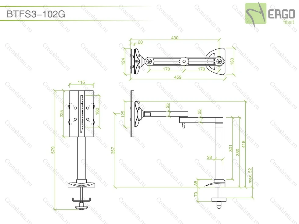 Технические характеристики кронштейн ERGO BTFS3-102G. арт. 7966: