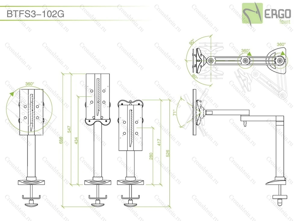 Функциональные возможности кронштейн ERGO BTFS3-102G. арт. 7966: