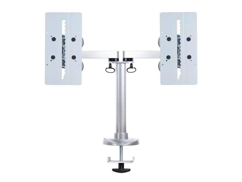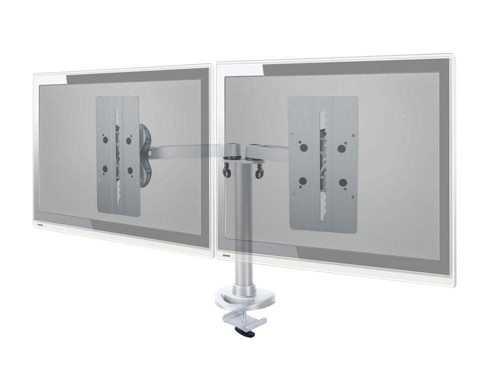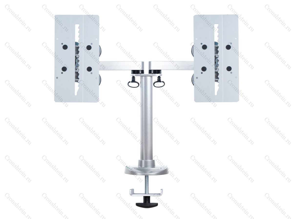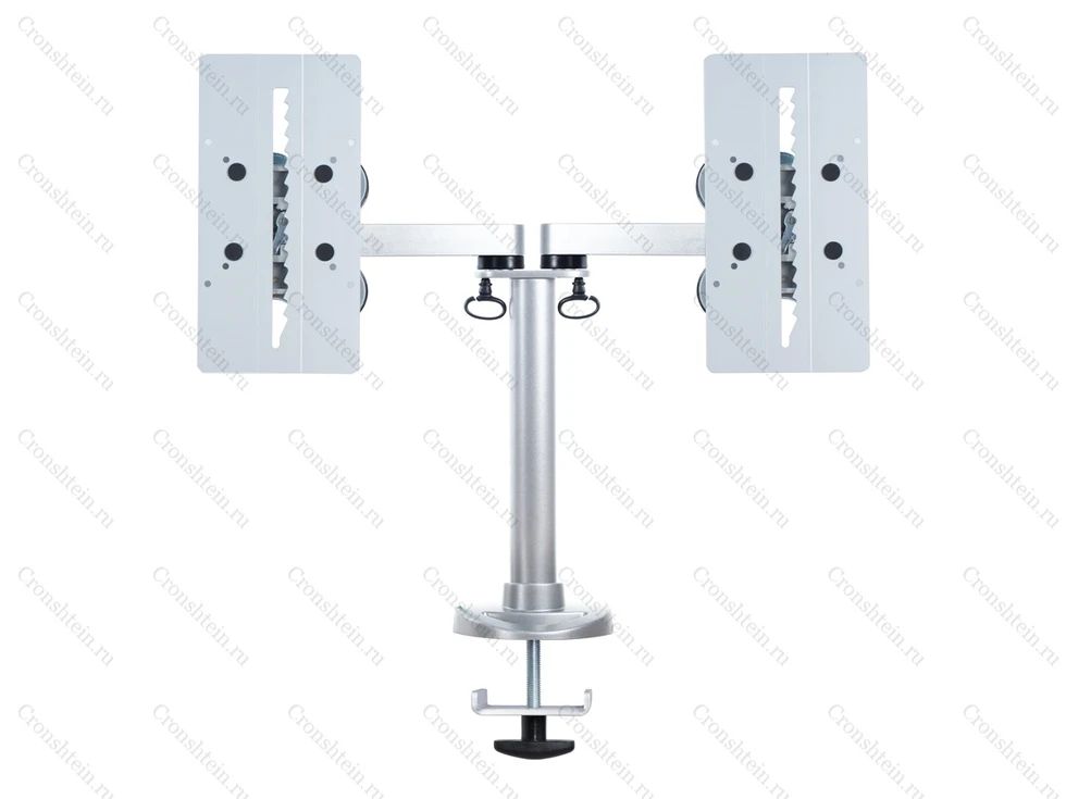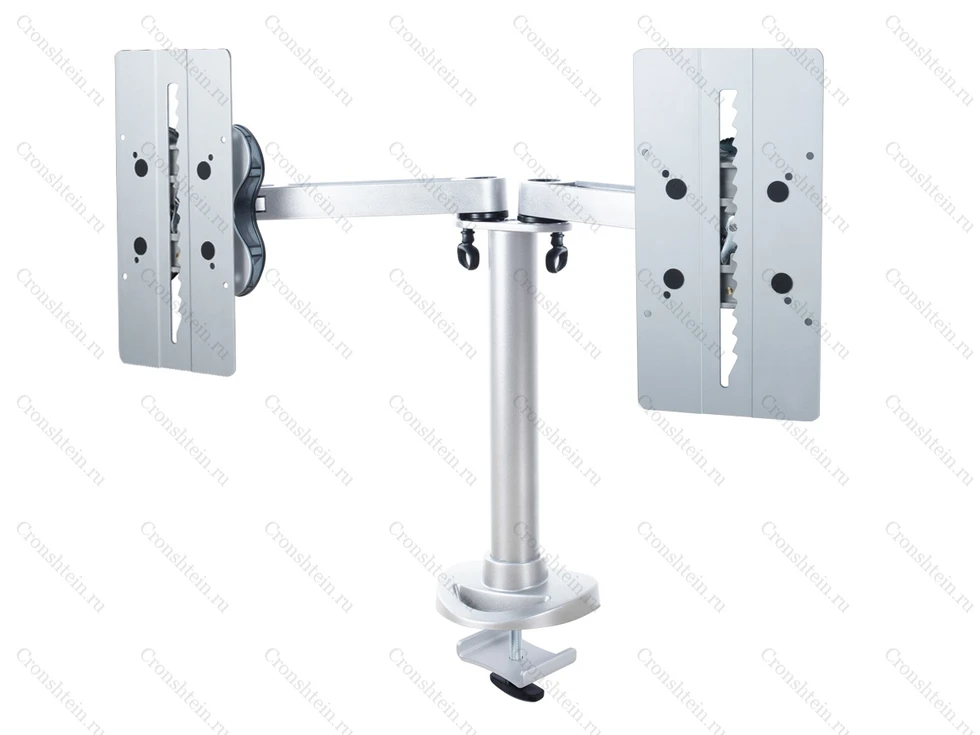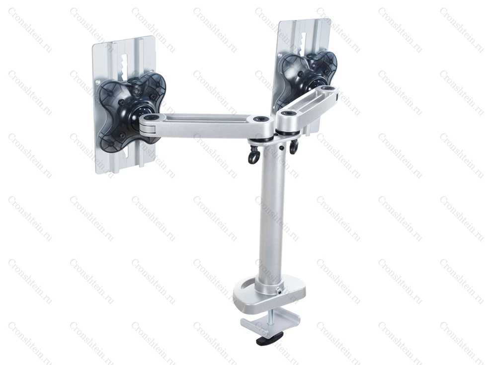Кронштейн с навесным адаптером стандарта VESA 75х75, 100х100 мм, вращением 360° (для книжной и альбомной ориентации), наклоном ±35°, поворотом ±90°. Конструкцией предусмотрены клипсы, организующие кабель-канал (2 шт.). Для монитора предусмотрена антивандальная защита (от демонтажа адаптера) - замок AS-07X приобретается отдельно. Материал: алюминий с декоративным пластиком. декоративным пластиком. Монтаж к поверхности струбциной «G» между столов или через два отверстия 15 мм. Габаритные размеры: (478-607)x515x119 мм. Максимальная нагрузка 24 кг.