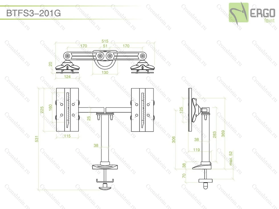 Технические характеристики кронштейн ERGO BTFS3-201G. арт. 7968:
