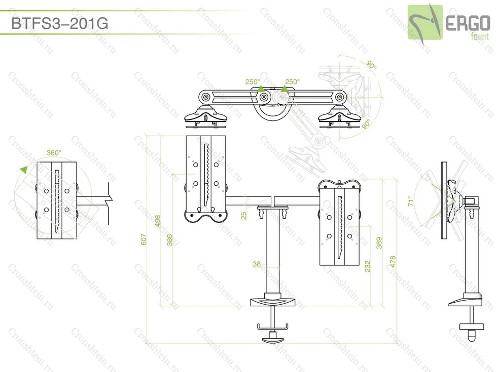 Функциональные возможности кронштейн ERGO BTFS3-201G. арт. 7968: