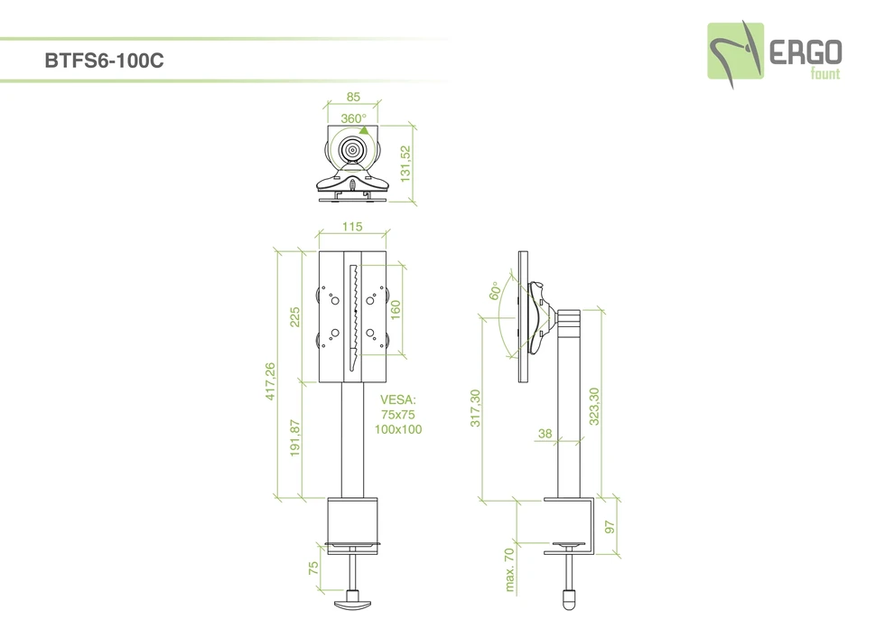 Настольный кронштейн ERGO BTFS6-100C