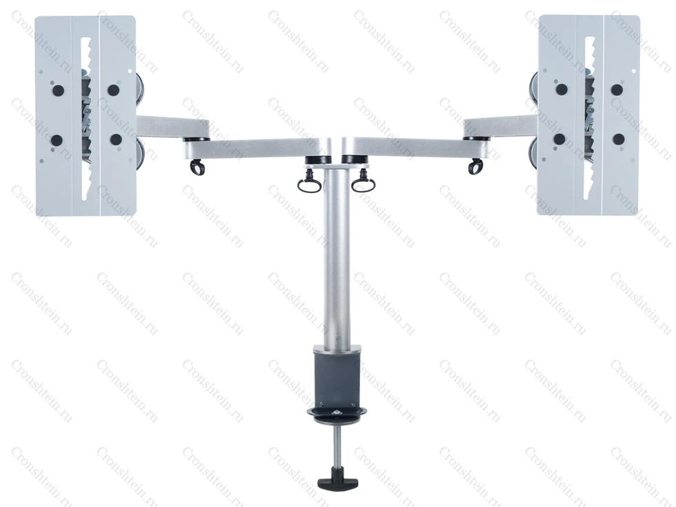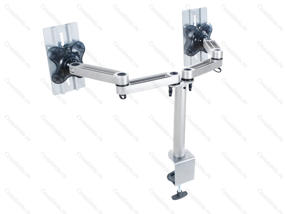 Кронштейн с навесным адаптером стандарта VESA 75х75, 100х100 мм, вращением 360° (для книжной и альбомной ориентации), наклоном ±35°, поворотом ±90°. Конструкцией предусмотрены клипсы, организующие кабель-канал (4 шт.). Для монитора предусмотрена антивандальная защита (от демонтажа адаптера) - замок AS-07X приобретается отдельно. Материал: алюминий с декоративным пластиком. Монтаж к поверхности струбциной (зажим «C»). Габаритные размеры: (594-723)x856x132 мм. Максимальная нагрузка 24 кг.