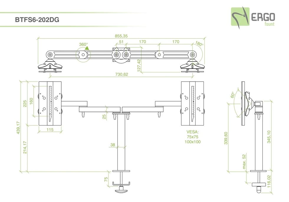 Функциональные возможности кронштейн ERGO BTFS6-202DG. арт. 7980: