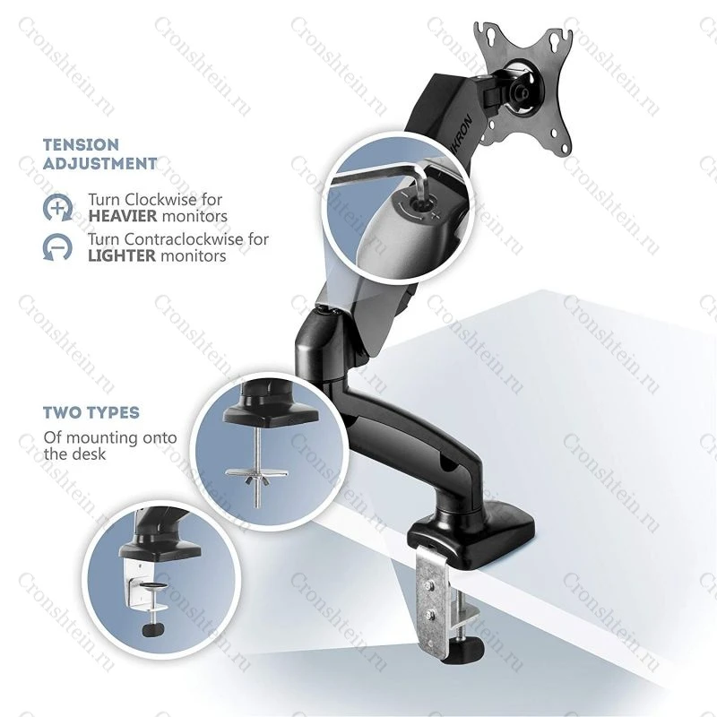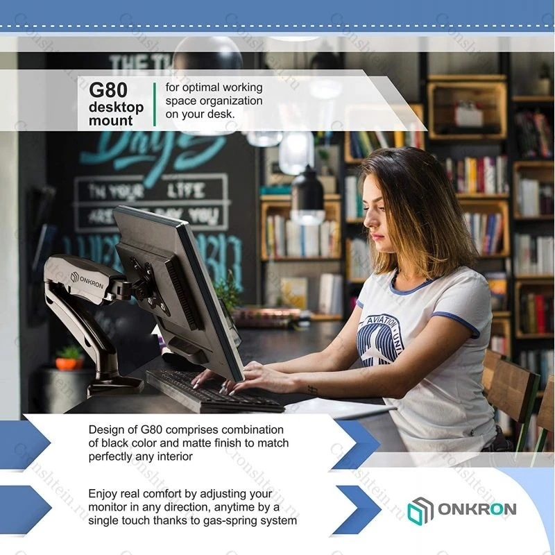 Настольный кронштейн с газлифтом Onkron G80B. арт 8200 в новом дизайне предназначен для телевизоров с диагональю 13"-27". Для оптимальной организации пространства на рабочем столе дома или в офисе предлагаем Вам настольный кронштейн для мониторов и телевизоров ONKRON G80 с газлифтом.