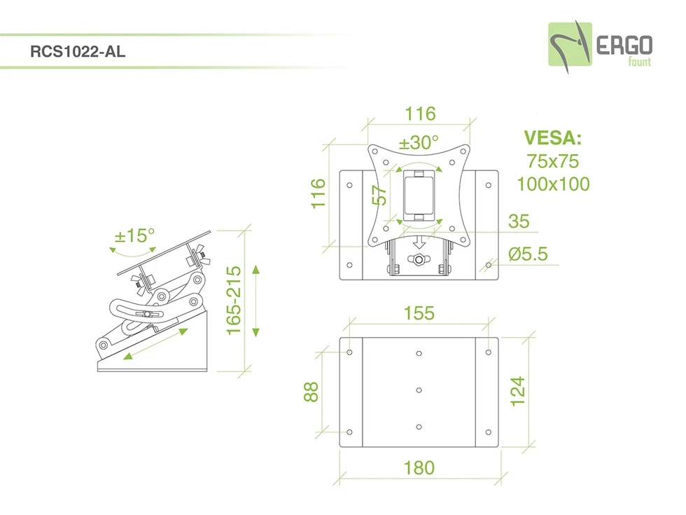 – настольный наклонный кронштейн для монитора диагональю 10–22''. Стандарт VESA 75x75 100x100. Подходит для установки мониторов с сенсорным экраном и моноблоков на трибуны для выступлений. Благодаря основанию, которое крепится к поверхности, экран остается стабильным при прикосновении. Наклон: ±15°. Полностью стальная конструкция. Крепежные винты для монтажа монитора поставляются отдельно. Цвет черный.