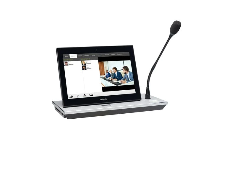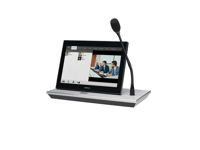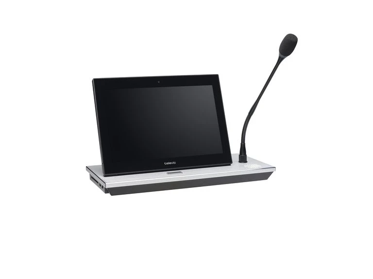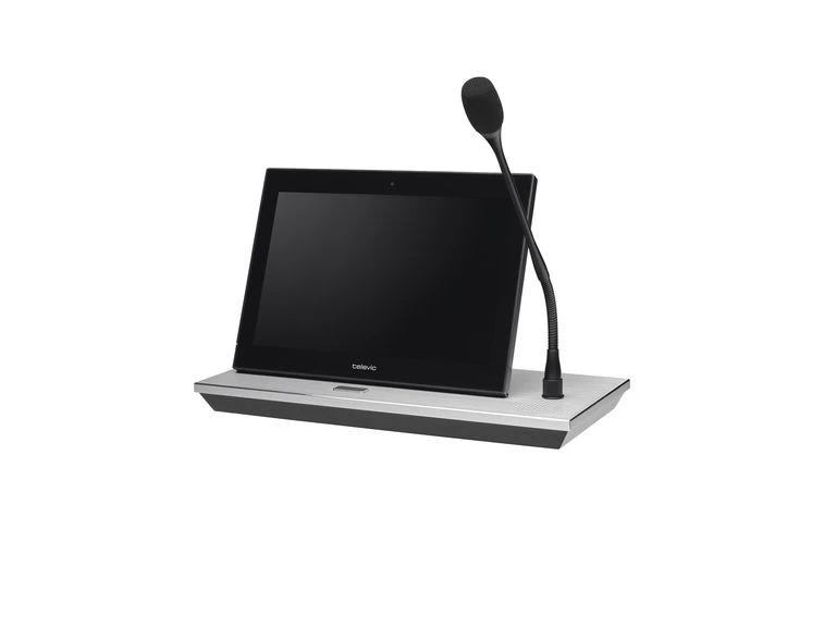 Настольный пульт делегат/председатель серии Plixus Multimedia с сенсорным экраном 10" с регулировкой угла 0°- 90°, встроенные камера, громкоговоритель, картридер для аутентификации, разъем для наушников, USB
