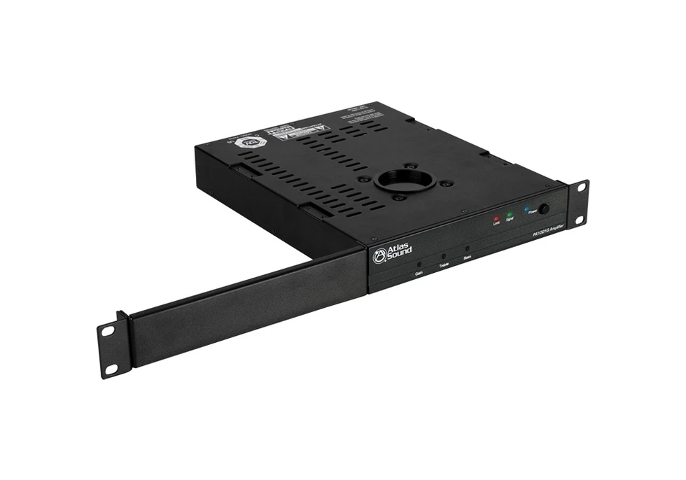 Одноканальный усилитель мощности 100 Вт – 70/100 В, удаленное управление, интерфейс VCA, регулировка тембра, штатный монтаж на штангу до 38 мм, опциональный в стойку 19'', корпус шириной 1/2 U.