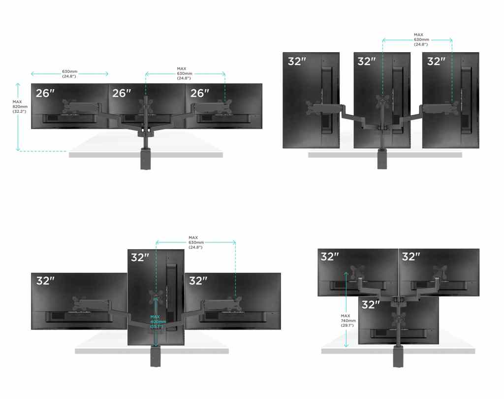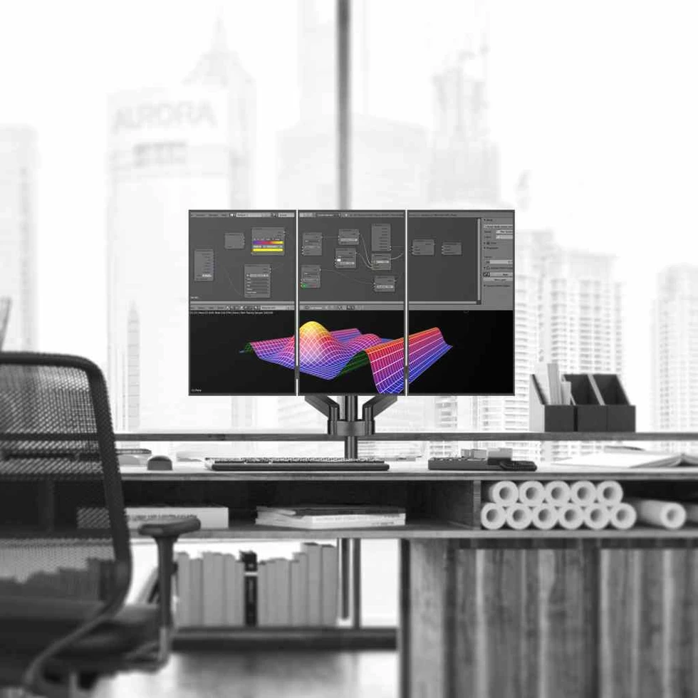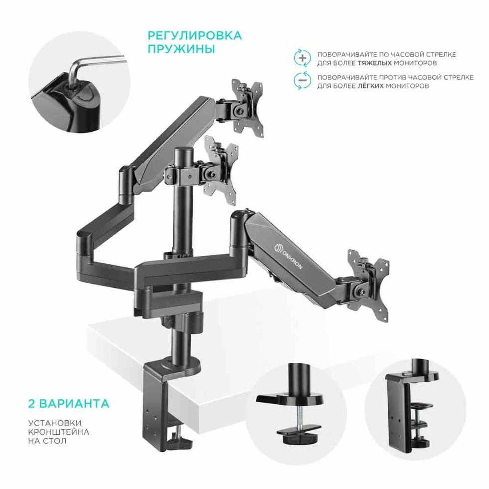 Настольный кронштейн для трёх мониторов, выполненный по технологии газлифт, ONKRON G280 подходит для мониторов и телевизоров диагональю от 13 до 32 дюймов (33,02 – 81,28 см) и весом до 8 кг на каждый.