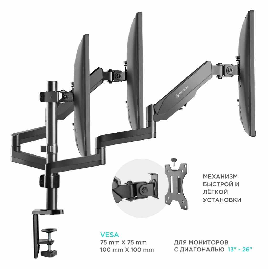 ONKRON кронштейн (держатель) для трех мониторов 13"-32" дюймов настольный, черный G280