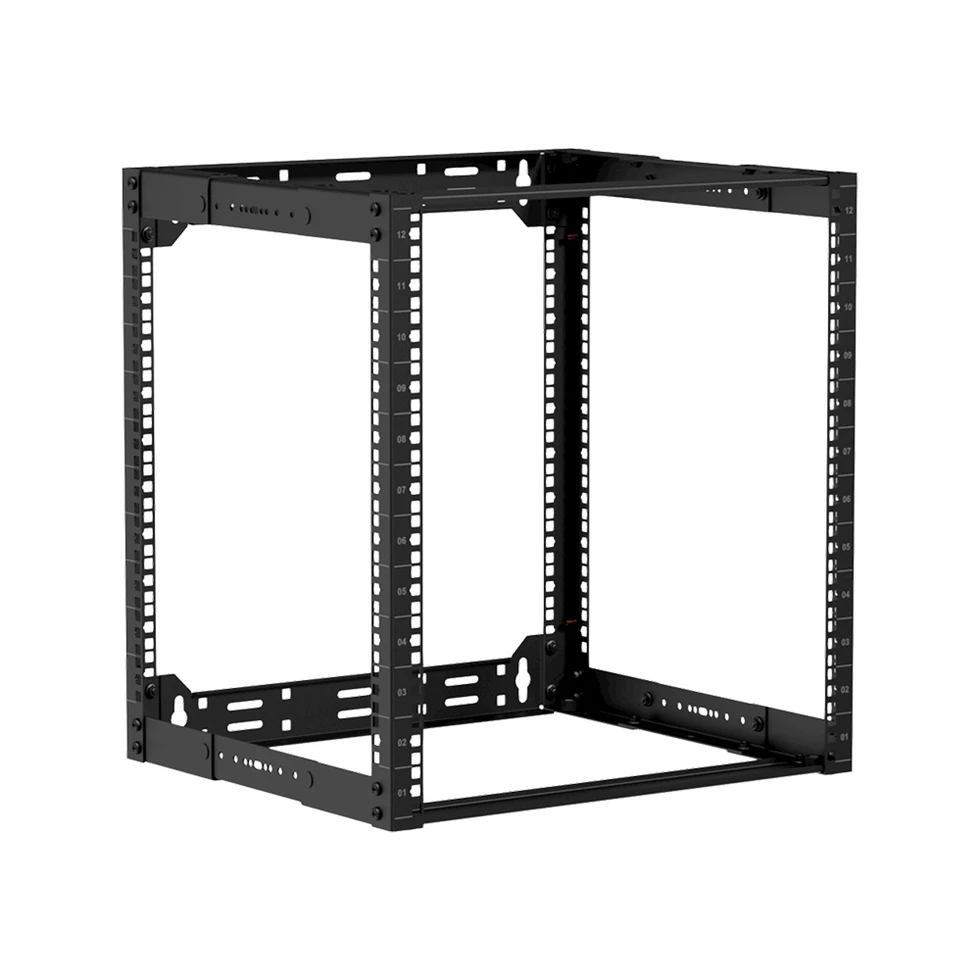 Открытая 19'' рэковая стойка глубиной 300–450 мм, высотой 12U. Полезная нагрузка до 100 кг.
