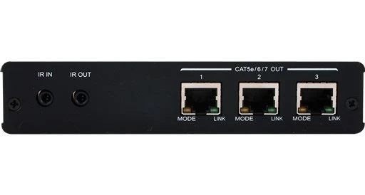 Передатчик 1:3 сигналов HDMI 3840x2160p/30, 4096x2160p/24 (YUV 4:2:0 – 4096x2160p/60), 3D с HDCP и EDID, ИК (2х miniJack 3,5 мм) в витую пару CAT5e c PoC (Power over Cable), HDBaseT, проходной выход HDMI, расстояние передачи до 60 м.