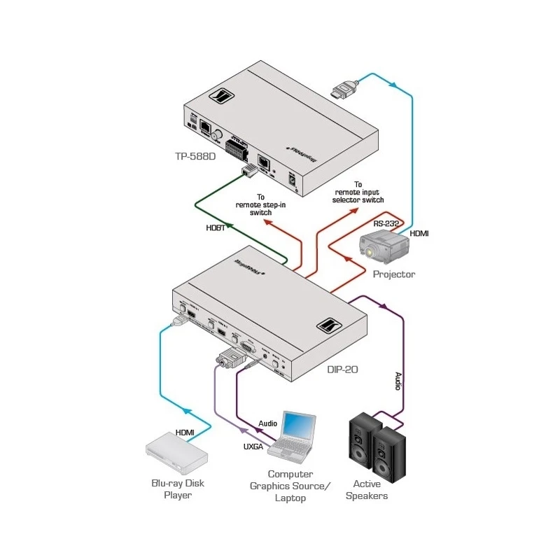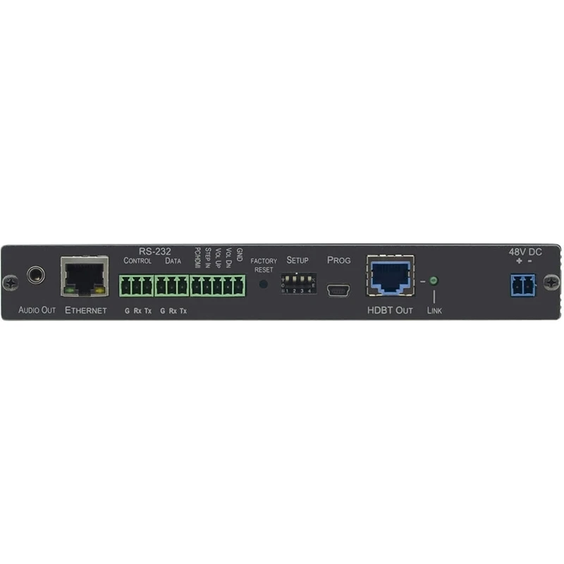 Передатчик 2хHDMI / VGA и стереоаудио, двунаправленного RS-232, ИК и Ethernet по витой паре HDBaseT с кнопкой управления коммутатором Step-In. Разрешение до 4K/60 (4:2:0). Поддержка HDCP и EDID. PoE совместимому приемнику. Расстояние до 180 метров – 1080p, 130 метров – 2K, 100 метров – 4K. Эмбеддер и деэмбеддер стереоаудио. Управление по RS-232 и IP.