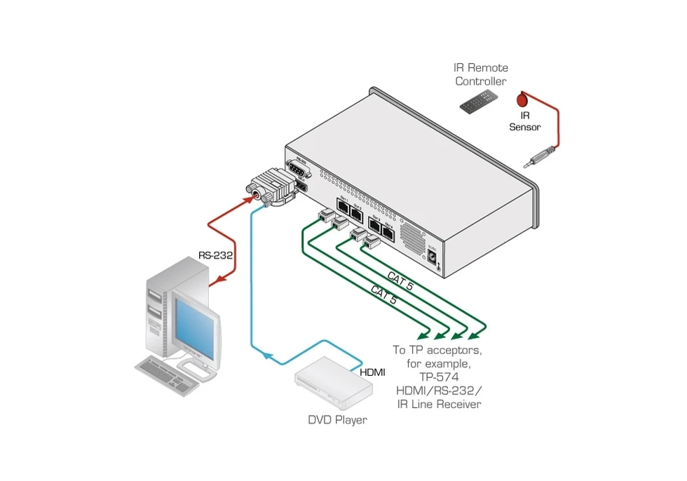 Передатчик и усилитель-распределитель 1:4 HDMI для витой пары DGKat.