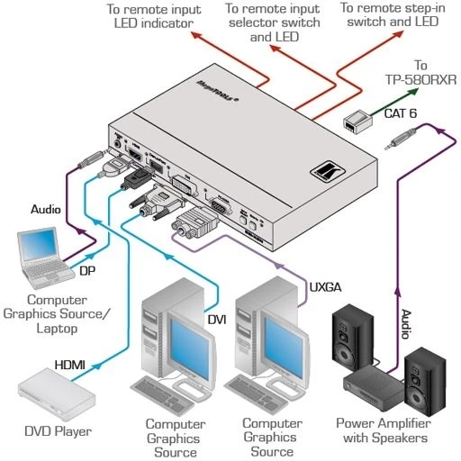 Передатчик сигнала HDMI / DVI-D / DisplayPort / VGA по витой паре HDBaseT и панель управления коммутатором Step-In.