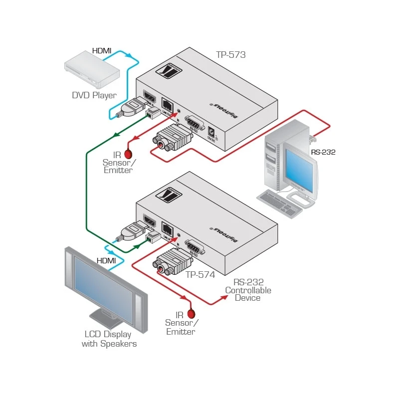 Передатчик сигнала HDMI, RS-232 и ИК в кабель витой пары (TP).
