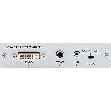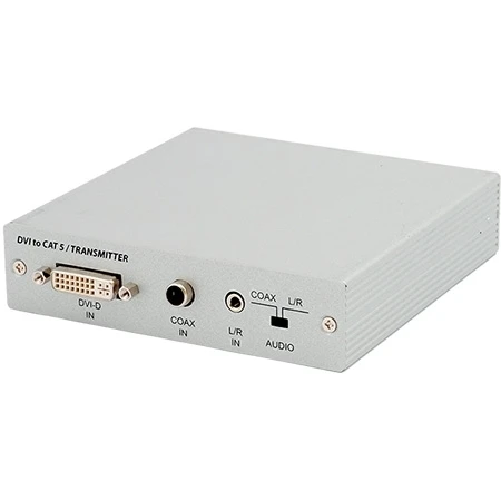 Передатчик сигналов DVI-D Single Link 1080p/60 (1920х1200/60), аналогового стереоаудио (miniJack 3,5 мм) и цифрового стерео S/PDIF (RCA) в две витые пары CAT5e, расстояние до 100 м.