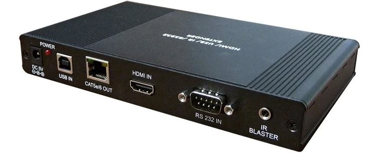Передатчик сигналов HDMI 1.2 1080p/60 (1920х1200) с HDCP и EDID, ИК (miniJack 3,5 мм), USB 2.0 и RS-232 (D-sub-9) по Ethernet (RJ45) до 16 каналов, расстояние передачи до 100 м.