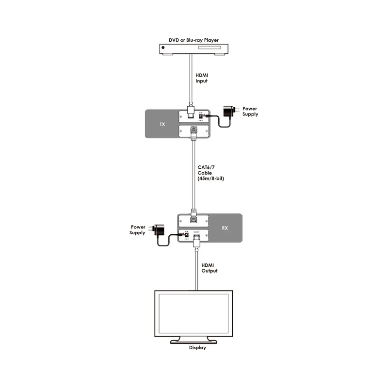 Передатчик сигналов HDMI 1080p с HDCP в витую пару CAT6, расстояние до 55 м (10+45).