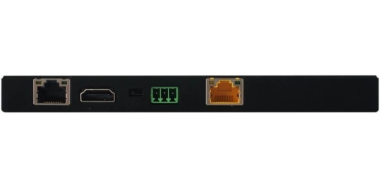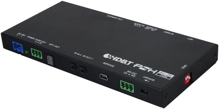 Передатчик сигналов HDMI 2.0 4K2K (YUV 4:2:0 – 4Kх2K/60, 3D) с HDCP 1.4, 2.2, EDID и CEC, Ethernet (RJ45), двунаправленного ИК (2х miniJack 3,5 мм) и RS-232 (терм. блок) в витую пару CAT5e с PoC (Power over Cable) 48 В к приемнику, HDBaseT. Выход S/PDIF (TOSLINK). Расстояние передачи 1080p – 100 м (4K2K – 70 м).