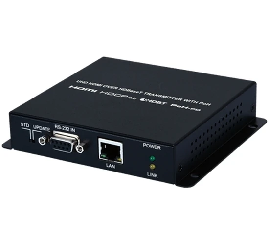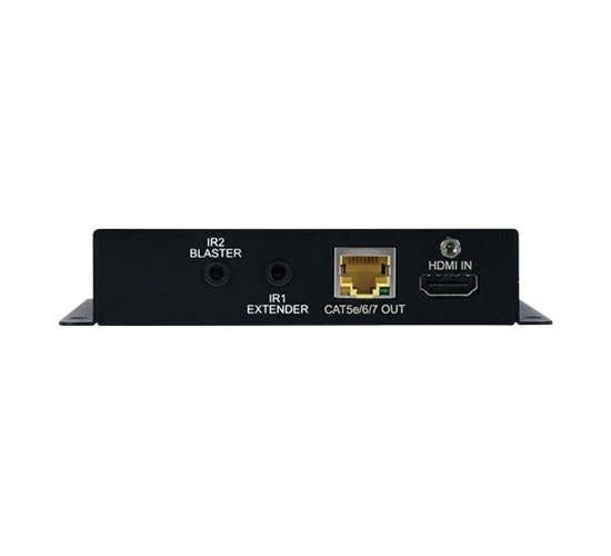 Передатчик сигналов HDMI 4Kх2K/60 (YUV 4:2:0), 3D с HDCP 2.2 и CEC, Ethernet (RJ45), ИК (2х miniJack 3,5 мм) и RS-232 (DE9) в витую пару CAT5e с PoH (Power over HDBaseT) 48 В для приемника, расстояние до 100 м для 1080p, 70 м для 4K. Совместимый приемник: CH-2527RX.