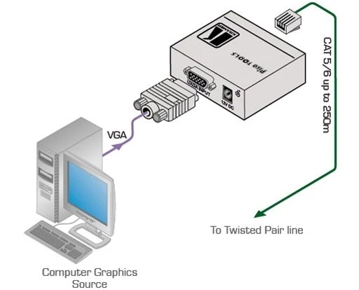 Передатчик VGA сигнала в витую пару (TP) с эмулятором источника данных EDID до 250 м.