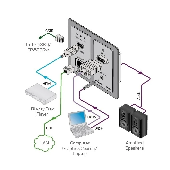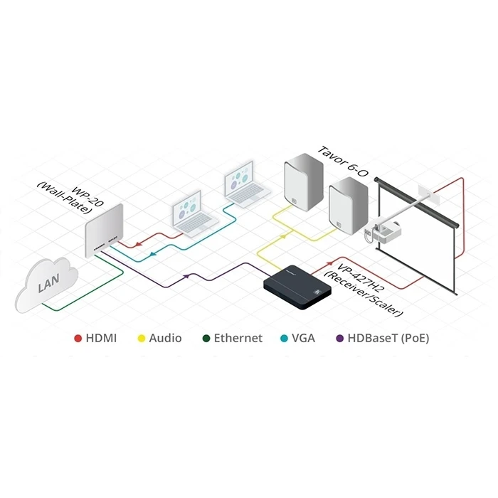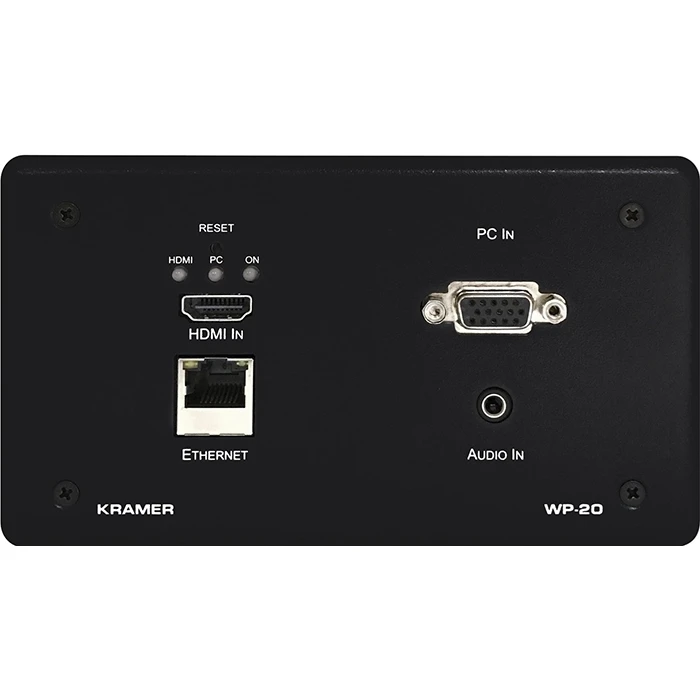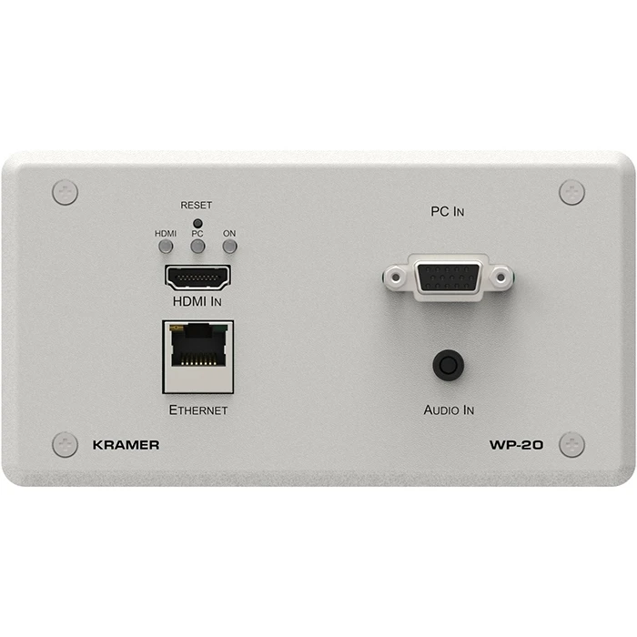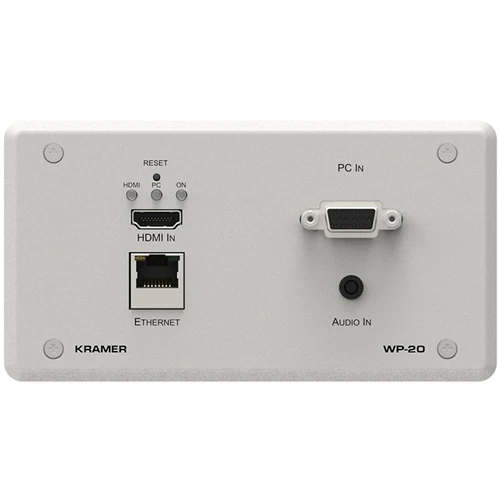 Передатчик VGA/HDMI, RS-232 и стереоаудио по витой паре HDBaseT, автоматическая коммутация источника, поддержка 4K, цвет белый.