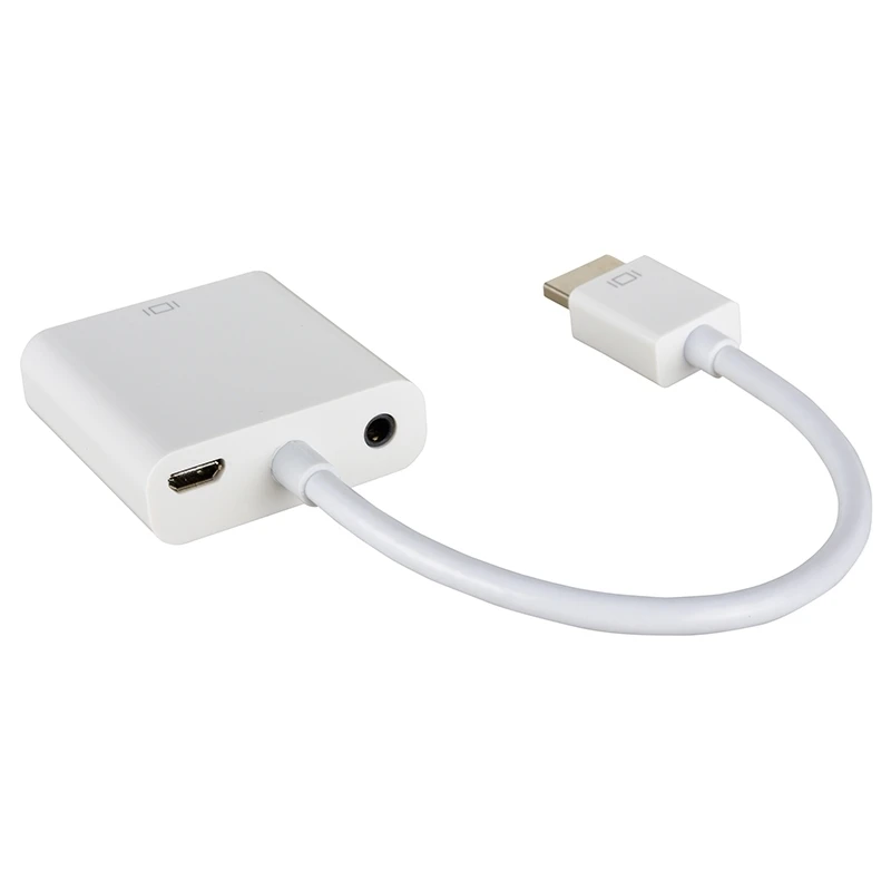 Переходник HDMI (вилка) на VGA (розетка) с аудиовыходом miniJack 3,5 мм, питание по HDMI или по micro-USB.