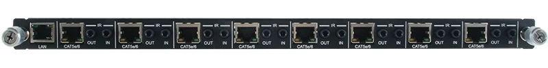 Плата с передатчиками в витую пару 8хCAT5e с PoC (Power over Cable), HDBaseT 1080p (1920х1200/60, 4Kx2K/30, 3D), вход/выход ИК (8х 2х miniJack 3,5 мм), RS-232, Ethernet (1xRJ45), расстояние до 100 м (HD видео), до 70 м (Ultra HD).