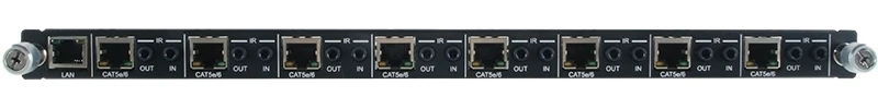Плата с приемниками из витой пары 8хCAT5e с PoC (Power over Cable), HDBaseT 1080p (1920х1200/60, 4Kx2K/30, 3D) с аудио 32-192KГц, вход/выход ИК (8 х 2х miniJack 3,5 мм), RS-232, Ethernet 100Base-T (1xRJ45), расстояние до 100 м (HD-видео), до 70 м (Ultra HD).
