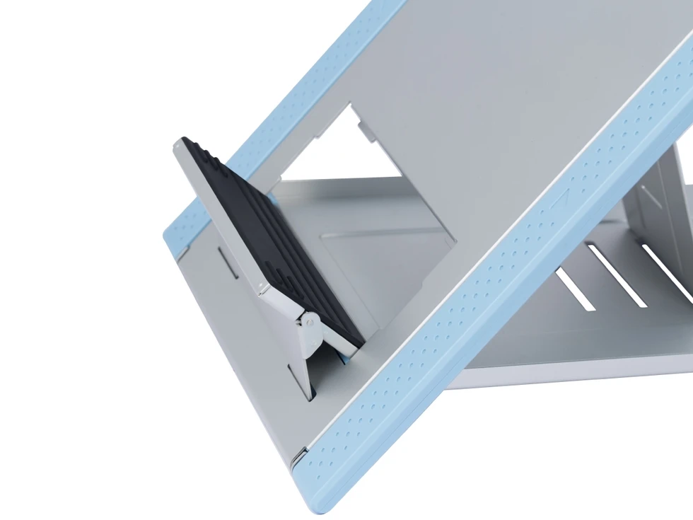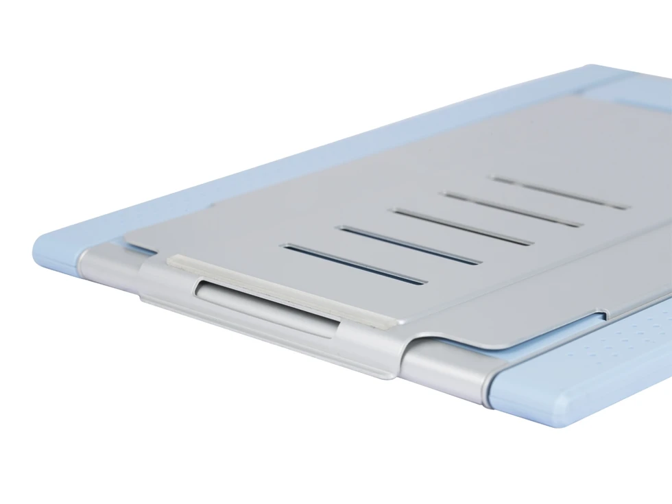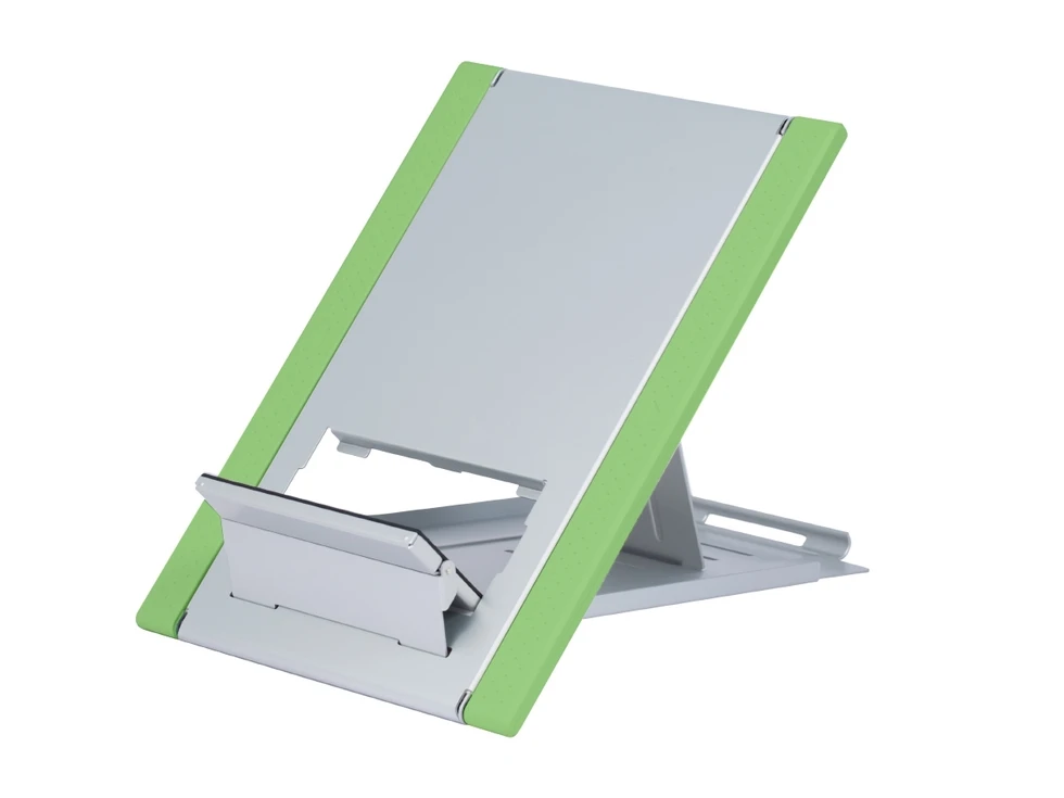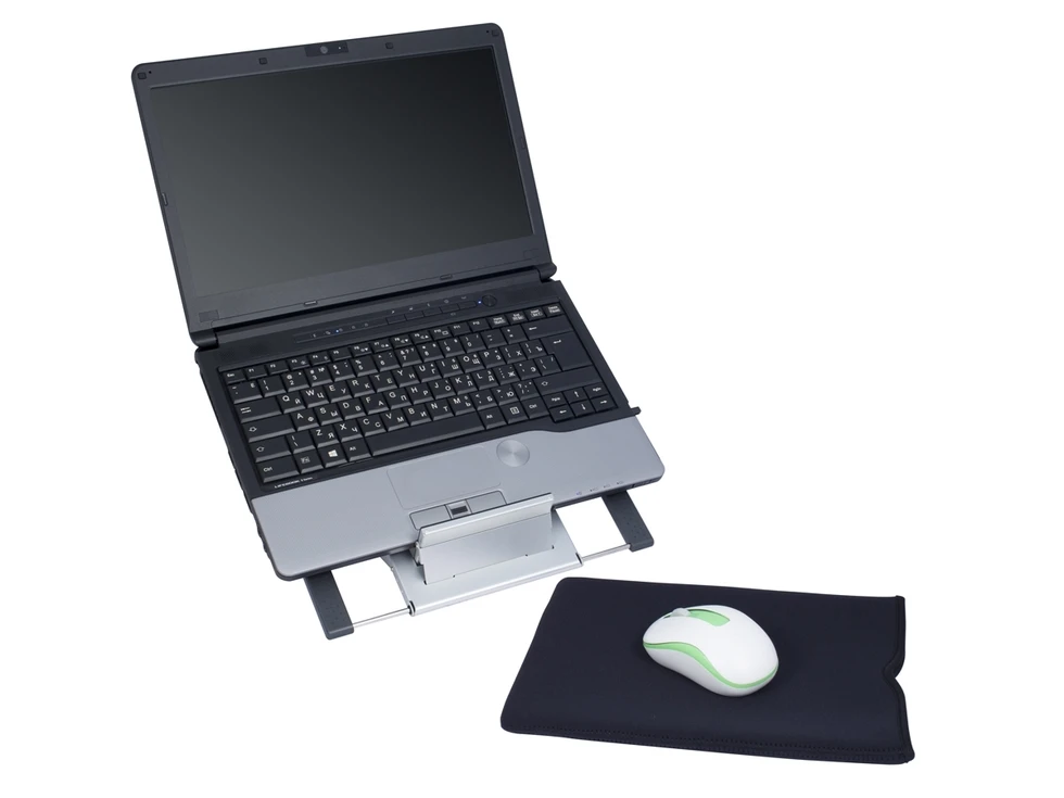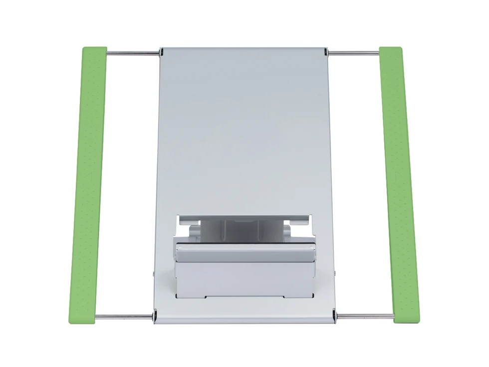 Подставка для ноутбука и iPad. Имеет 6 различных положений наклона для удобства работы. Регулируемая ширина подходит для большинства портативных компьютеров. Перфорация задней стенки позволяет избегать перегрева, неопреновая сумка может применяться в качестве коврика для мыши. Цвет: зелёный.