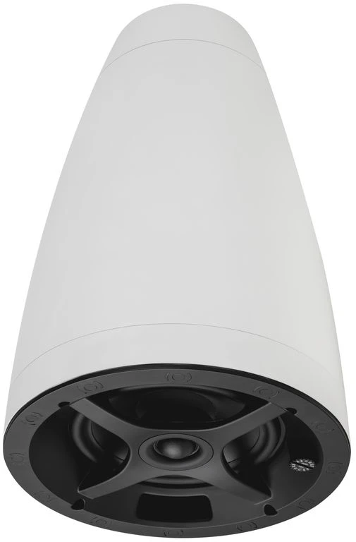 Акустическая система белого цвета имеет минималистичный дизайн, который напоминает подвесное освещение, благодаря чему легко впишется в любой интерьер. Грили такого же дизайна как в серии In-Ceiling позволяют комбинировать акустические системы данных серий в одном пространстве. Верхняя крышка скрывает все монтажные разъемы и разъемы соединительных кабелей.