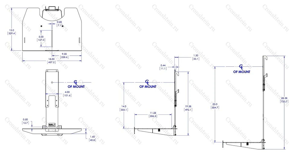 • Регулируемая по высоте для размещения различных размеров компонентов AV