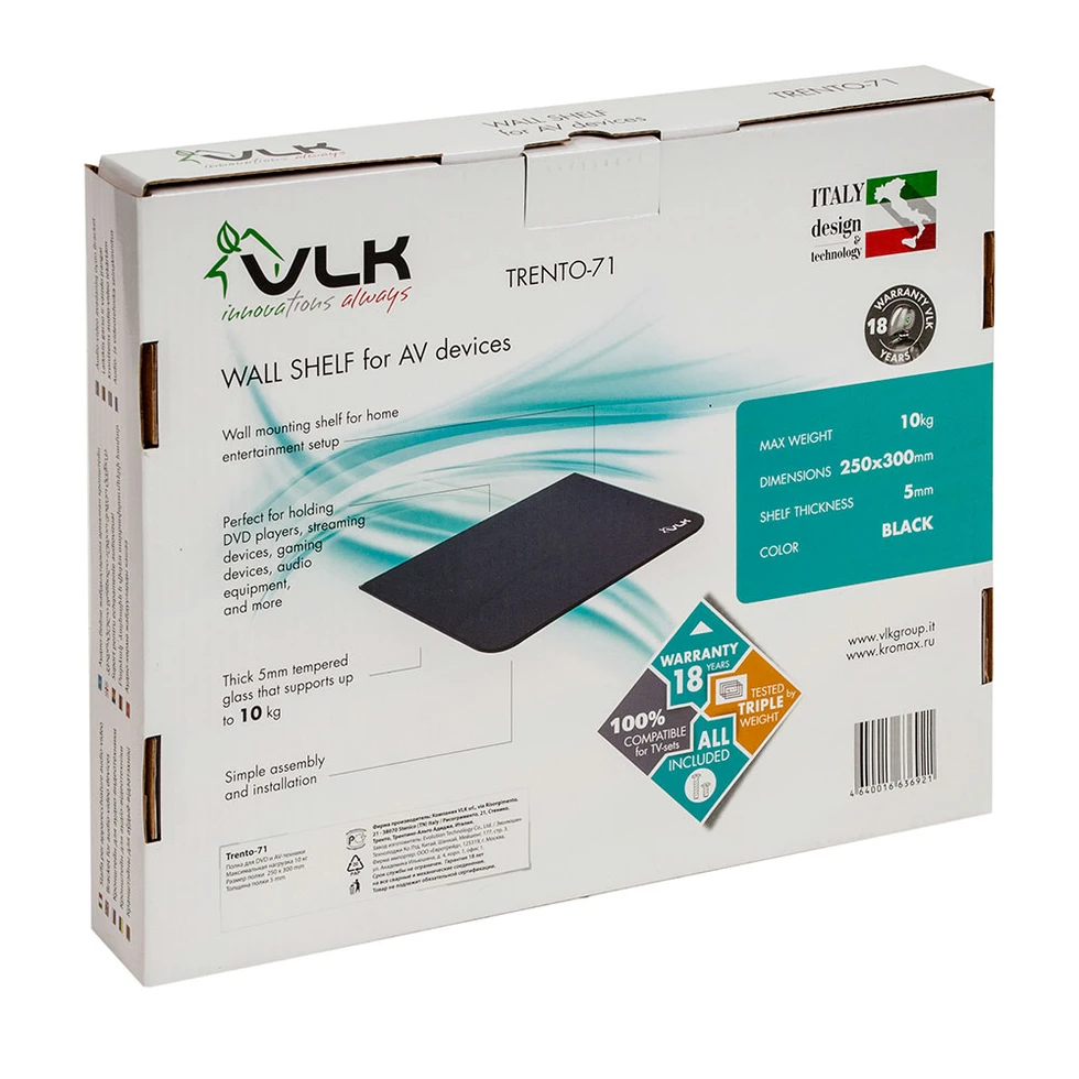 Полка для DVD, Blu-Ray плеера, проектора и AV-техники VLK TRENTO-71 BLACK
