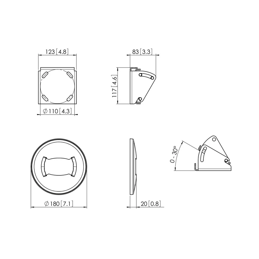 Потолочная пластина c регулировкой угла наклона и поворота для установки штанг модульной крепежной системы Connect-it к наклонному потолку. Используется со штангами PUC 2508, PUC 2515, PUC 2530. Наклон: 0..60°, с жесткой фиксацией. Поворот: 360° с последующей фиксацией положения. Макс. нагрузка: 80 кг. Декоративная брендированная накладка для потолка. Цвет черный.
