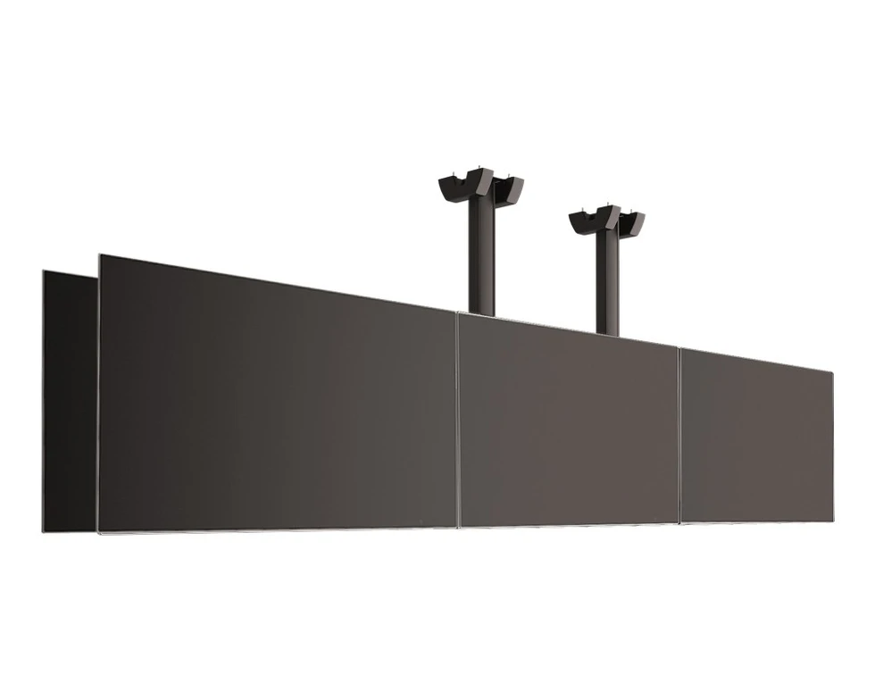 Потолочное двухстороннее крепление для видеостены 1х3 Vogels C1308 Dual. арт 8901 из дисплеев с диагональю экрана 40-50''. Альбомная ориентация. Предназначено для монтажа дисплеев спина к спине . Стандарт VESA от 100x100 до 400x400 мм. Наклон +7°/-3°. Возможна регулировка в трех плоскостях. Длина штанги - 80 см. Предусмотрен скрытый кабель канал CIS. Допустимая нагрузка - 320 кг. Мах масса одного дисплея - 53 кг. Цвет чёрный.