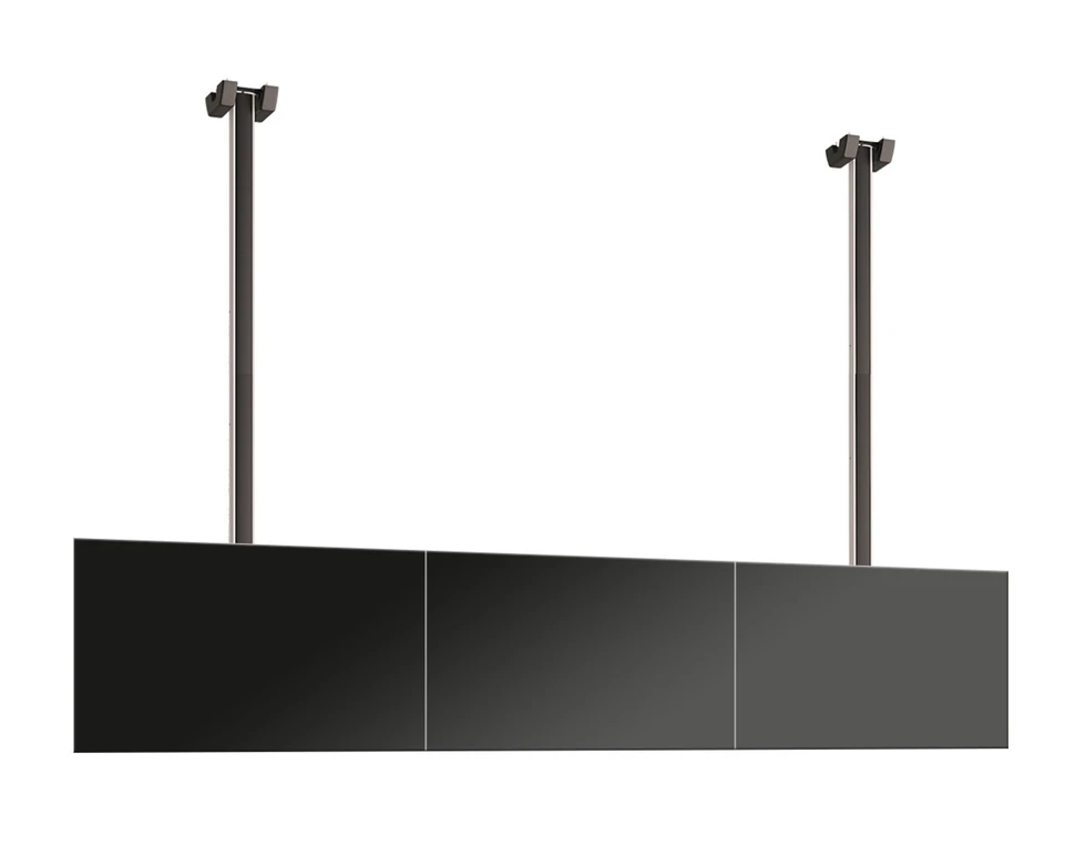 Потолочное крепление для видеостены 1х3 Vogels C1330S. арт 8881 из дисплеев с диагональю экрана 40-50''. Альбомная ориентация. Стандарт VESA от 100x100 до 400x400 мм. Наклон +7°/-3°. Возможна регулировка в трех плоскостях. Длина штанги - 300 см. Предусмотрен скрытый кабель канал CIS. Допустимая нагрузка - 160 кг. Мах масса одного дисплея - 53 кг. Цвет серебристый.